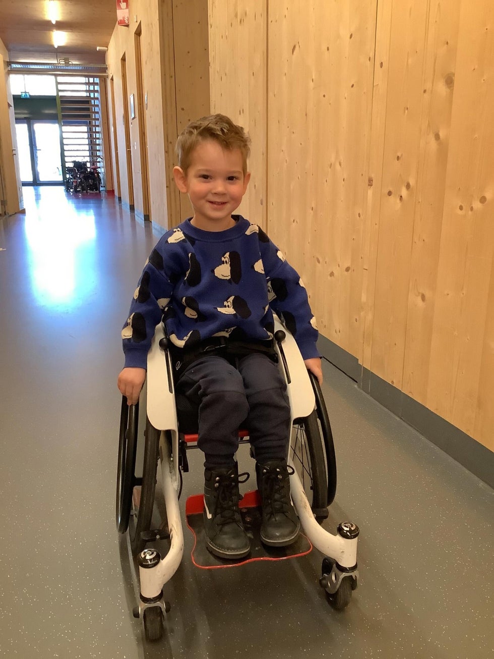 Zelf vind Emanuel het fijn en is hij best een beetje trots als hij oefent in het rolstoeltje van Rijndam.